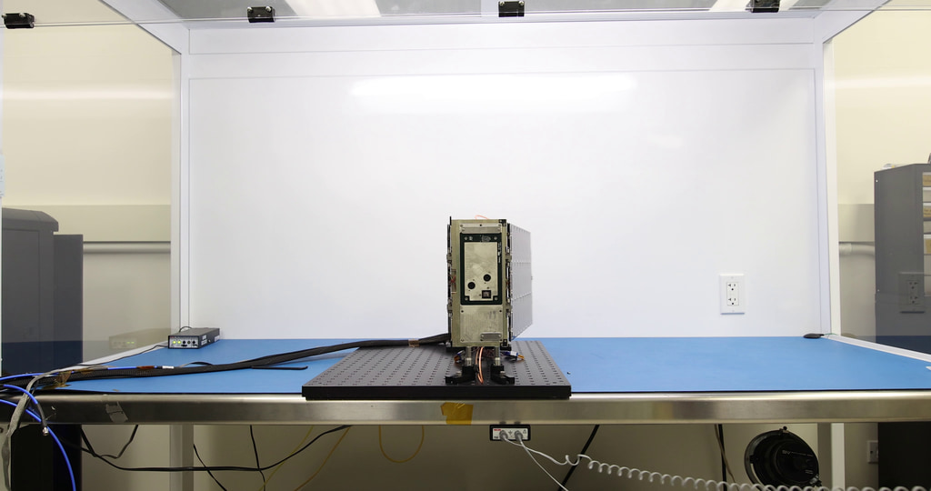 Go to this pageBurstCube is a mission developed at NASA’s Goddard Space Flight Center in Greenbelt, Maryland. It is expected to launch in March 2024. This CubeSat will detect short gamma-ray bursts, brief flashes of the highest-energy form of light. Dense stellar remnants called neutron stars create these bursts when they collide with other neutron stars or black holes. Short gamma-ray bursts, which last less than 2 seconds, are important sources for gravitational wave discoveries and multimessenger astronomy. BurstCube will use Earth’s magnetic field to orientate itself as it scans the sky. To do so, the mission team had to map the spacecraft’s own magnetic field using a special facility at NASA’s Wallops Flight Facility in Virginia. The magnetic calibration chamber generates a known magnetic field that cancels out Earth’s. The team's measurements of BurstCube’s field in the chamber will help figure out where the satellite is pointing once in space, so scientists can locate gamma-ray bursts and tell other observatories where to look. ||